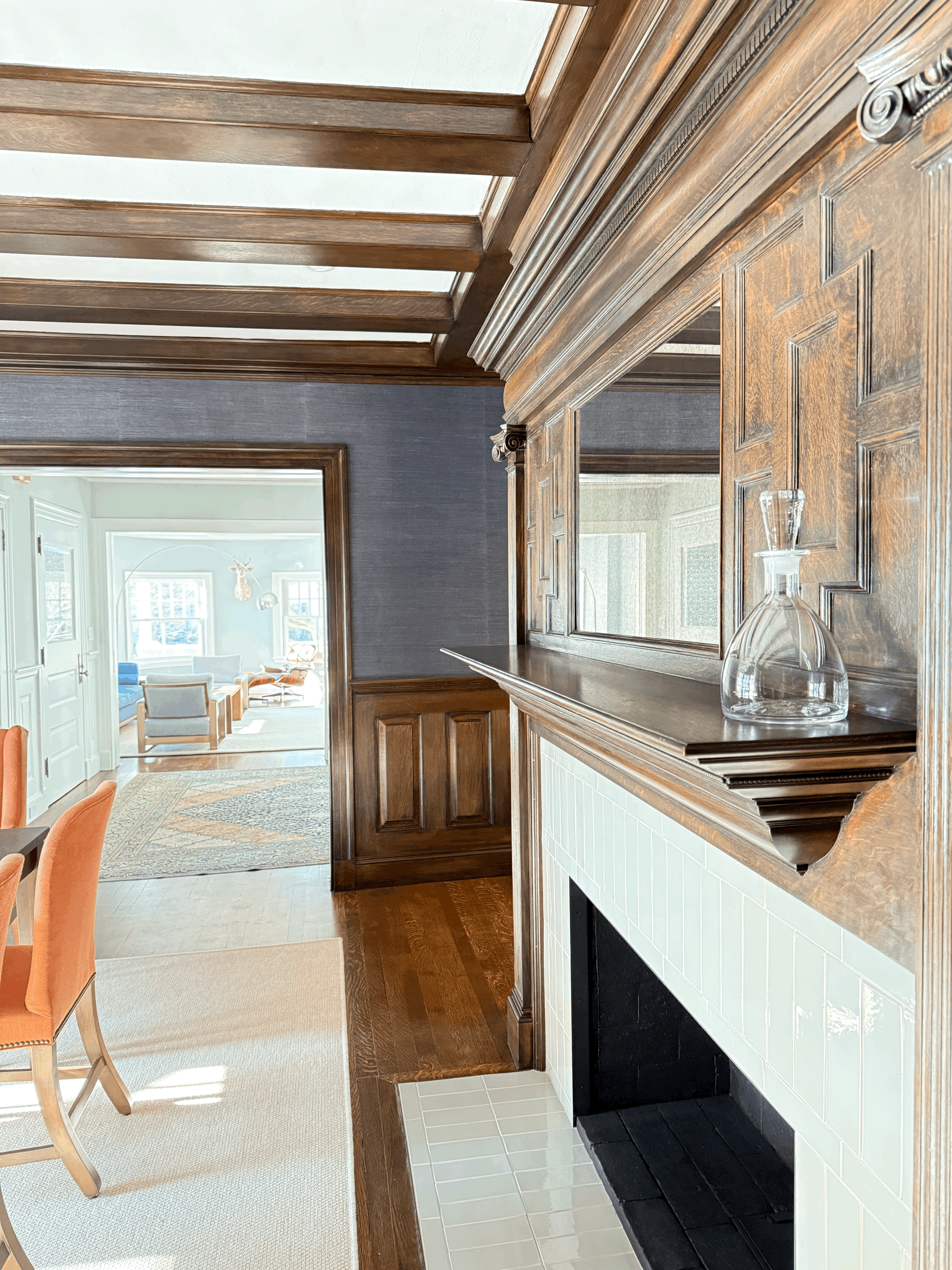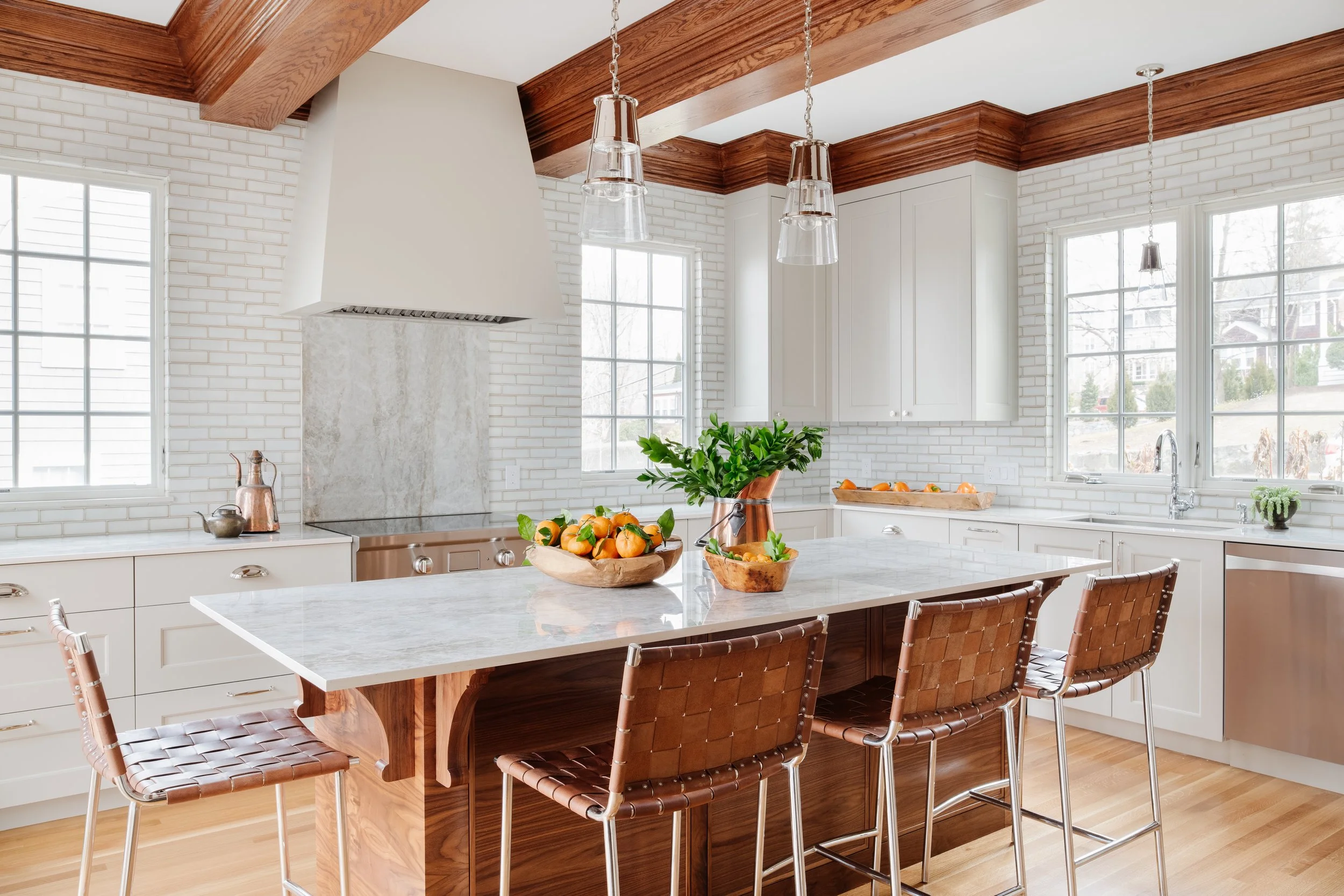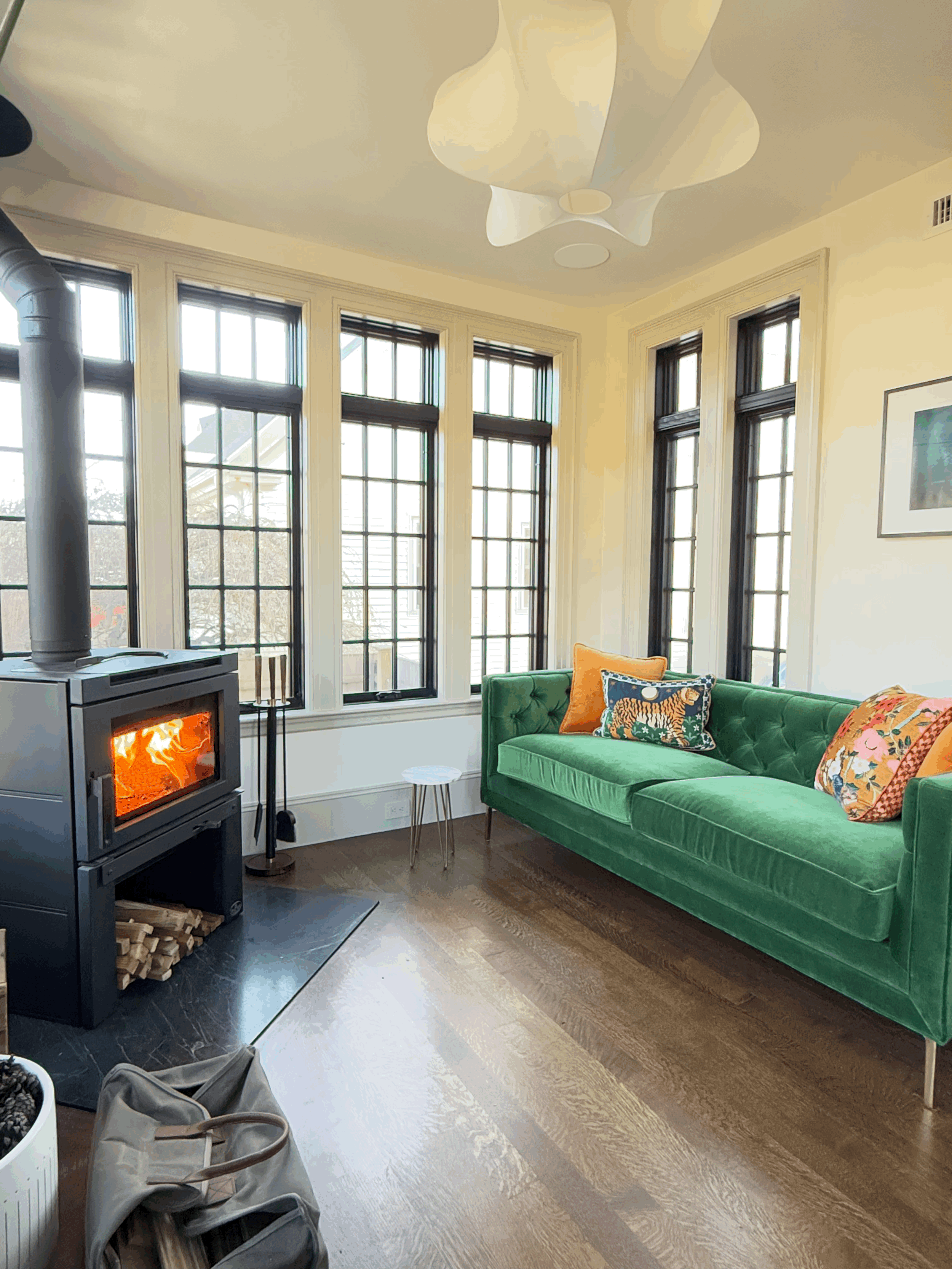 Floating cherry bench with corner Marvin windows, and a Fir entry door.