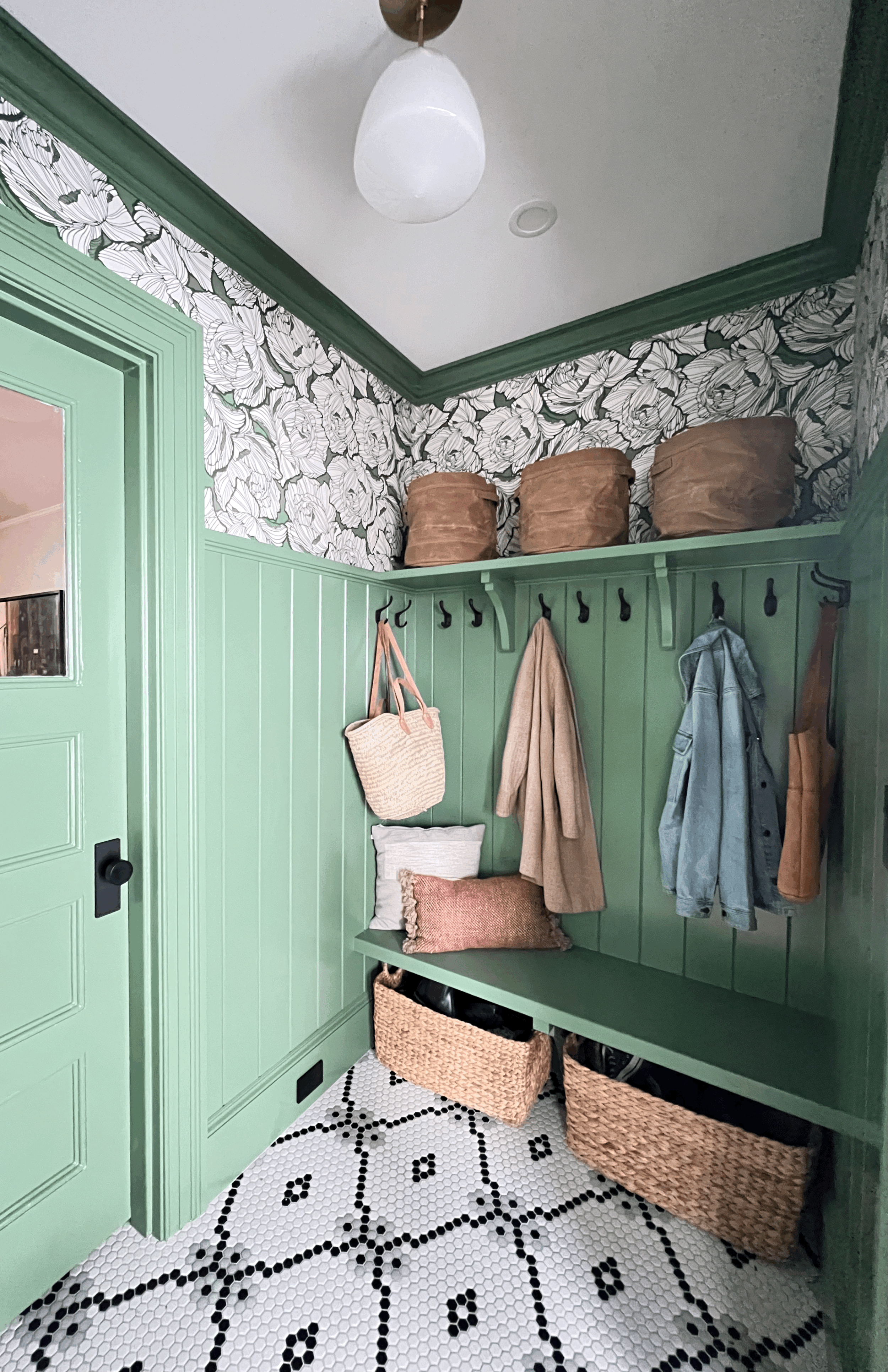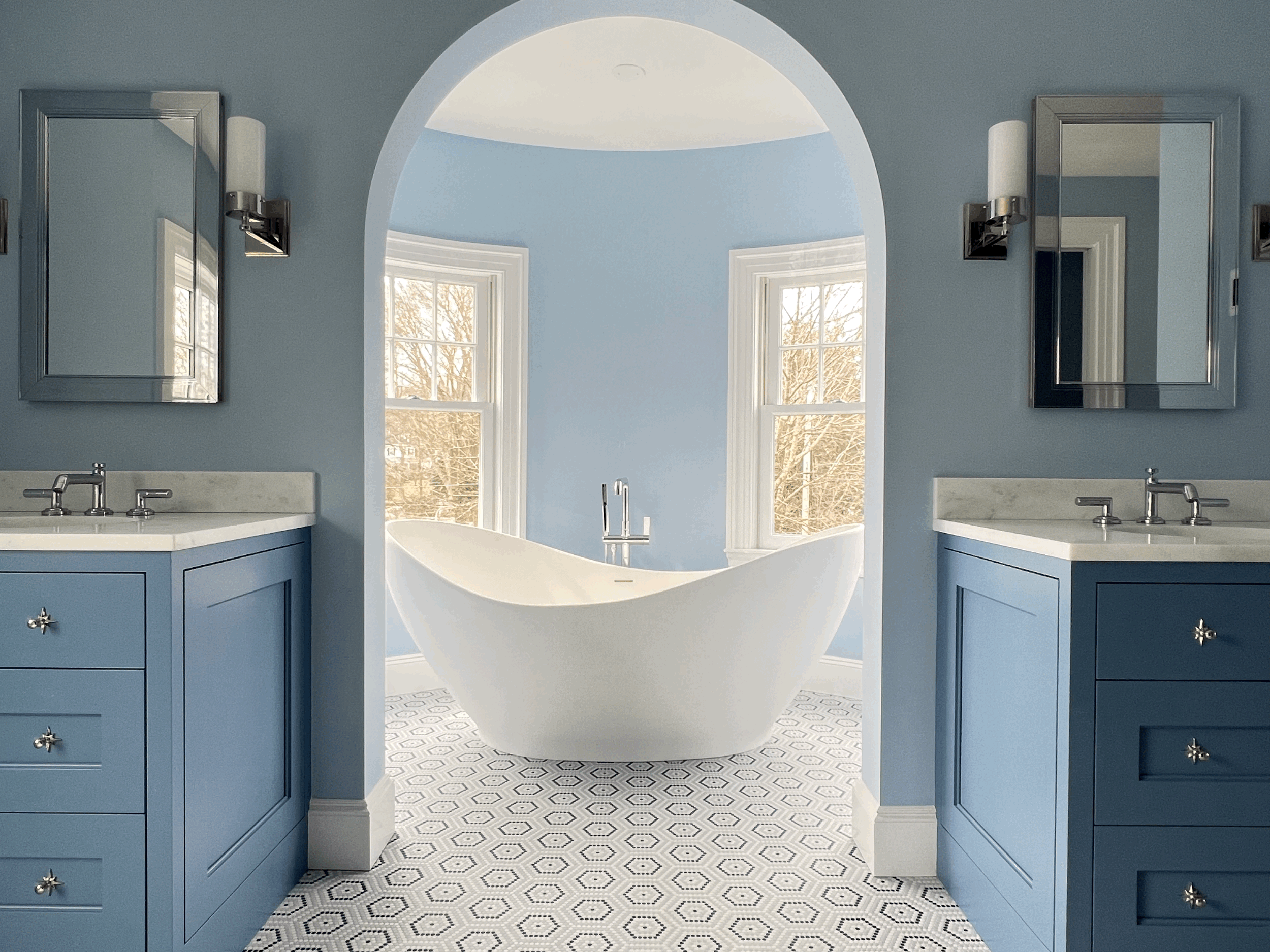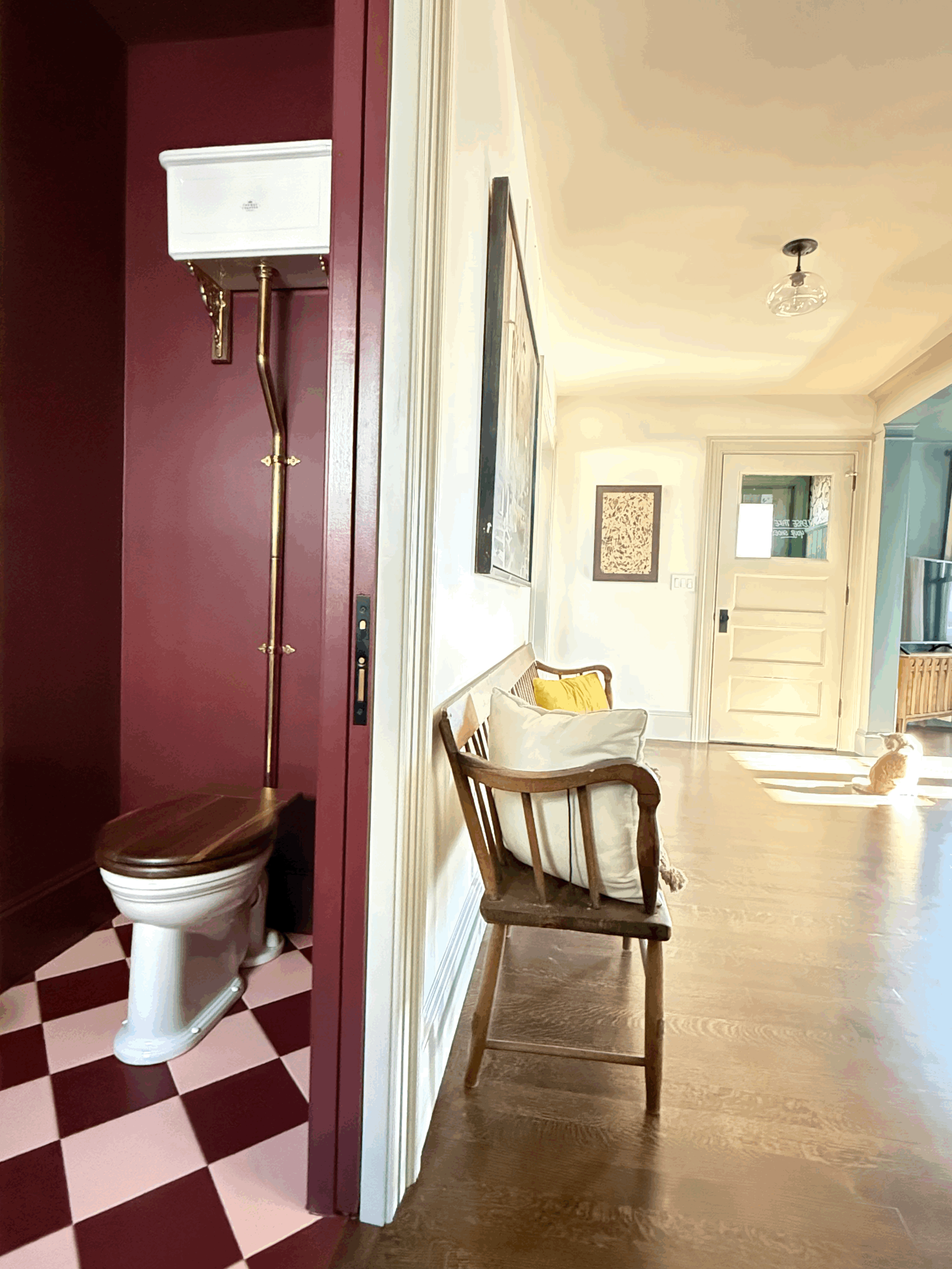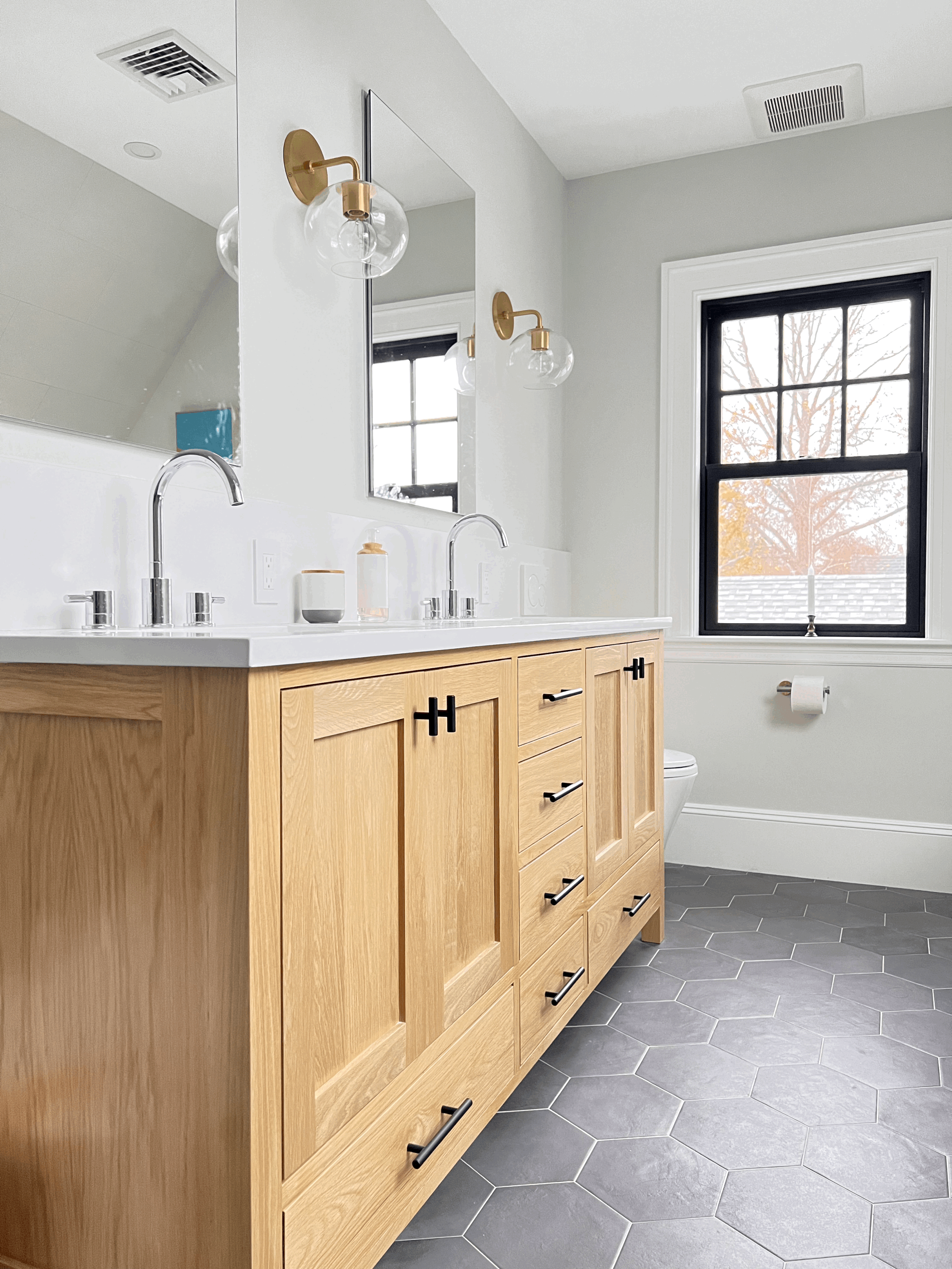 Floating cherry bench with corner Marvin windows, and a Fir entry door.